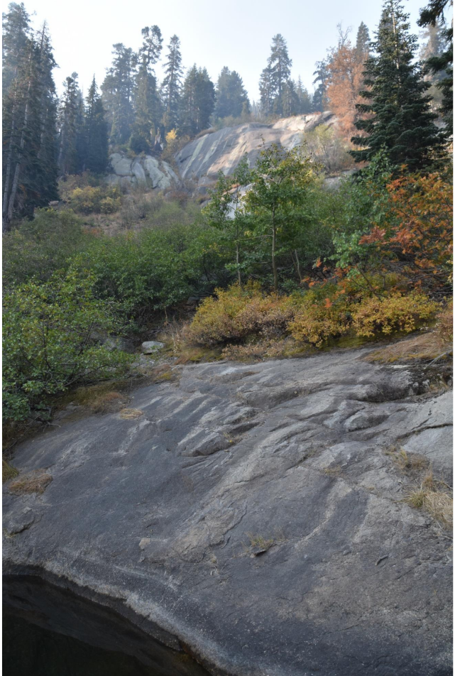 The other cabins were built side by side on a level area which may have been the glacial moraine formed during the time when glaciers scooped out the depressions which later filled with melting snow becoming the two lakes and the pond. When I think back to how this beautiful amphitheater, its cliffs, waterfalls, and peaks were formed, I wonder what the future holds. In a drier and hotter climate will the lakes become meadows or disappear altogether? And will the landscape, succumbing to fires, lose its conifers and become brush land or oak savannah? Will we have to ascend to 10,000 feet to find the Sierra we once loved?