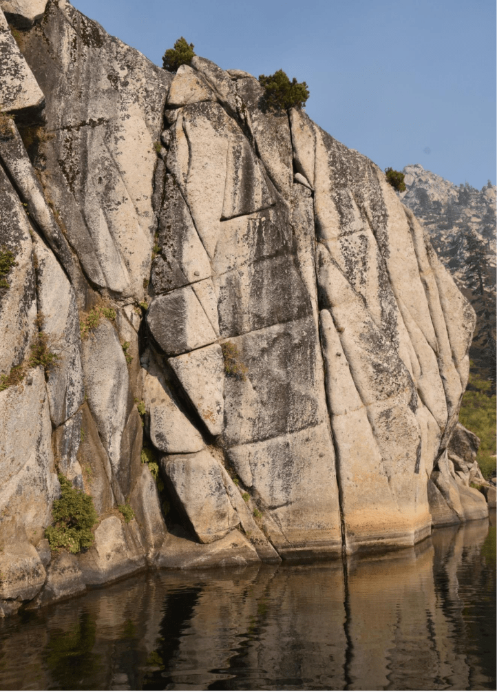 Around the corner from the oaks come the cliffs which distinguish upper Angora Lake from most other lakes. I always think this massive wall must be at least 10,000 feet high but in reality it reaches less than 9,000 feet, about 1,500 above the lake level. Sometimes even reality goes out the window when I think of Angora. Since I’m unable to travel any longer, Angora remains fixed in my mind and my heart and I want to get it right.