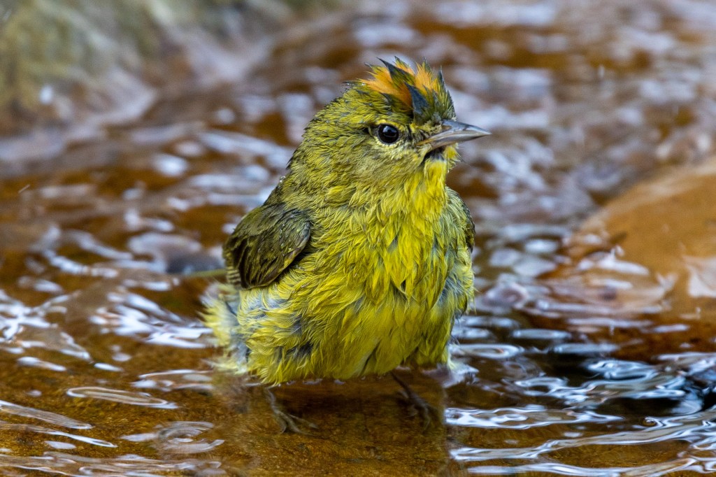 (8) A wet Orange-crowned Warbler revealing its orange crown feathers.