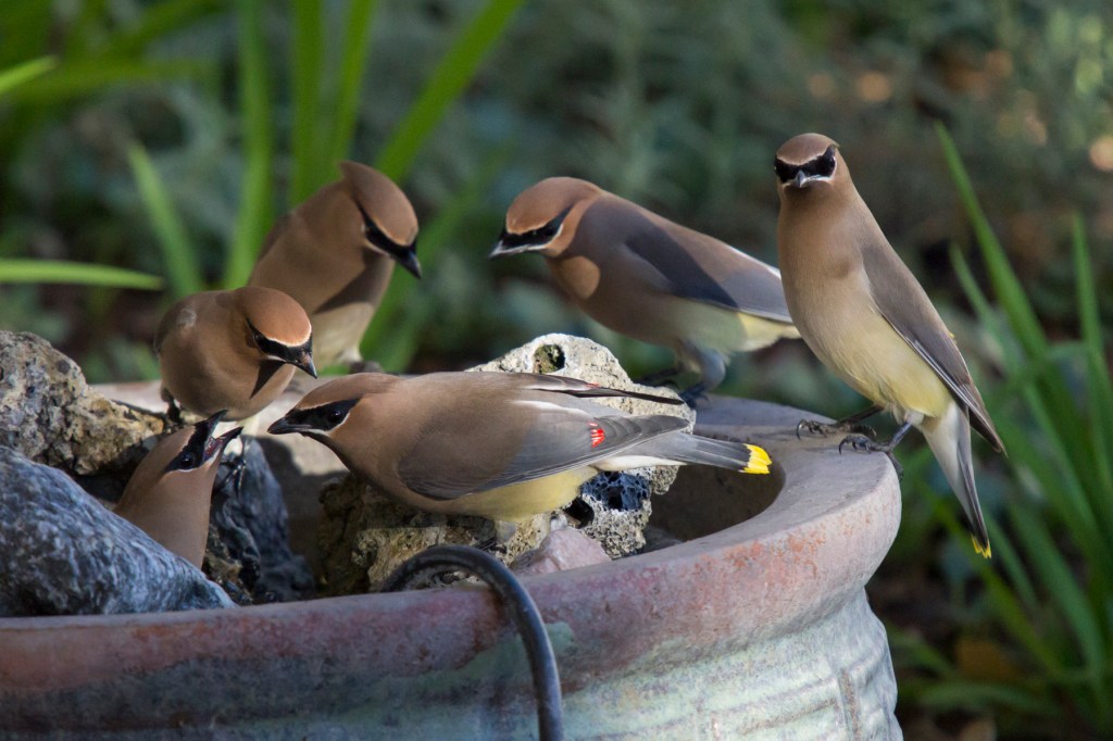 (7) Group of Cedar Waxwings. In the spring they will head north to conifer forests where they will briefly breed before heading back on the road again.